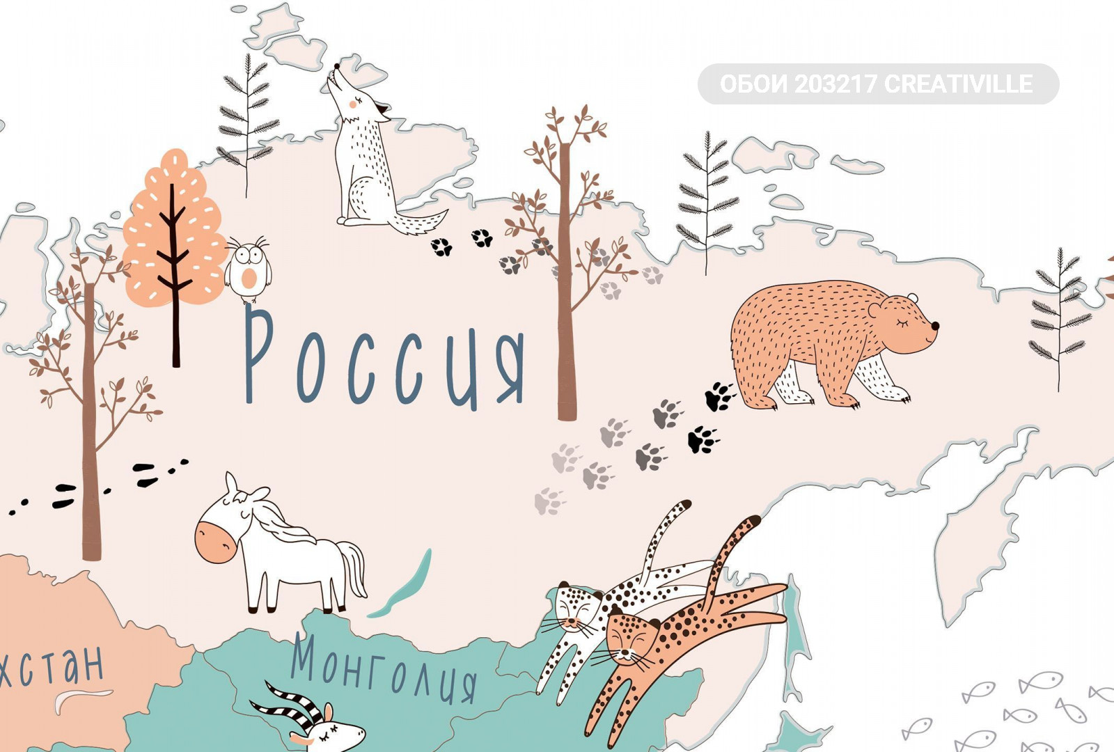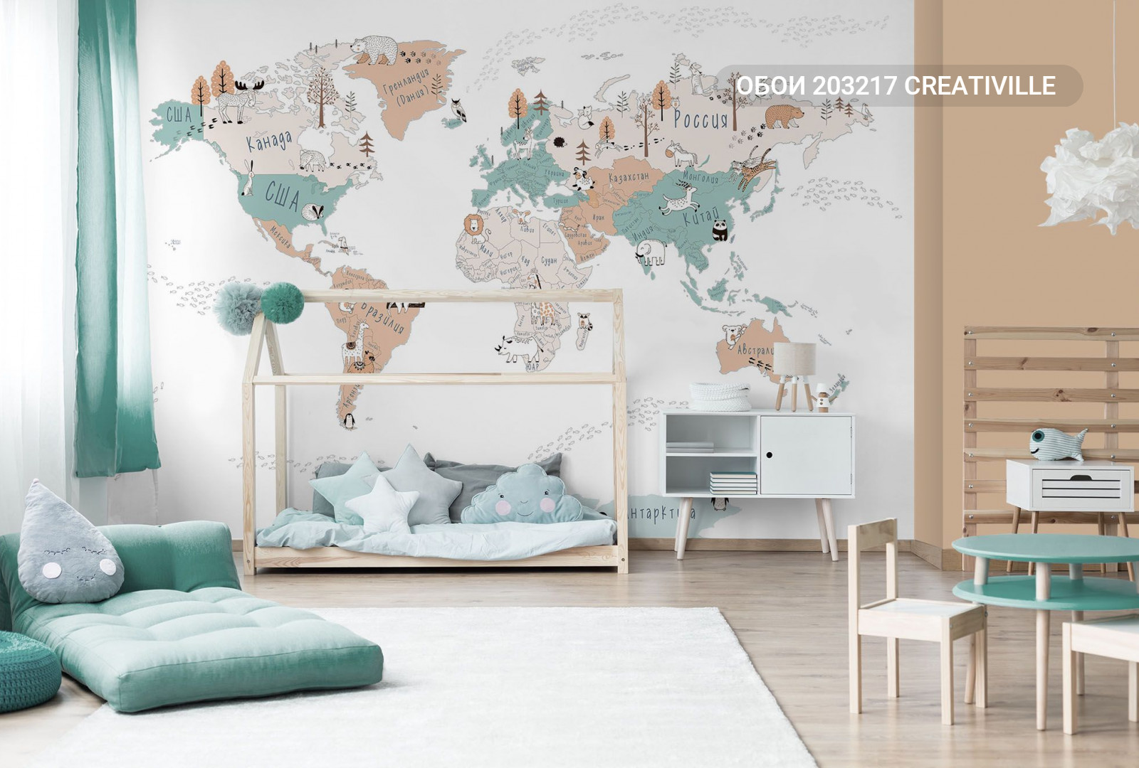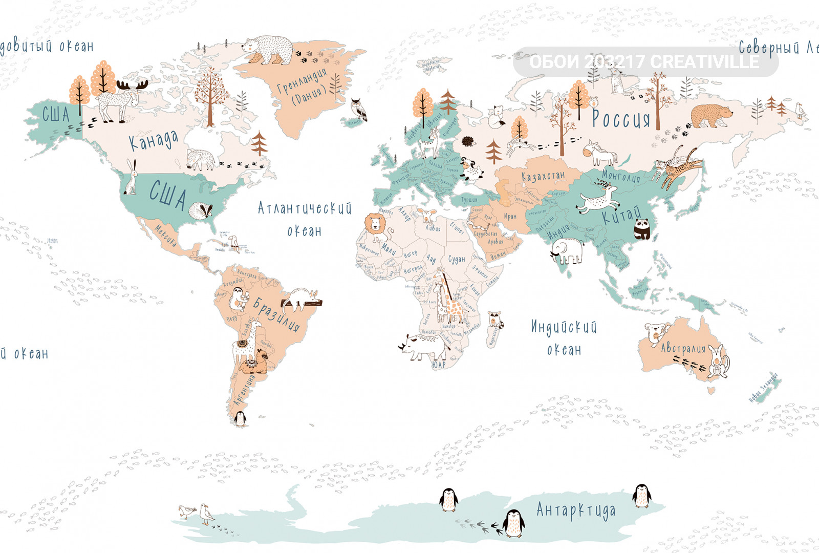 203217 Creativille карта мира в стиле дудл
