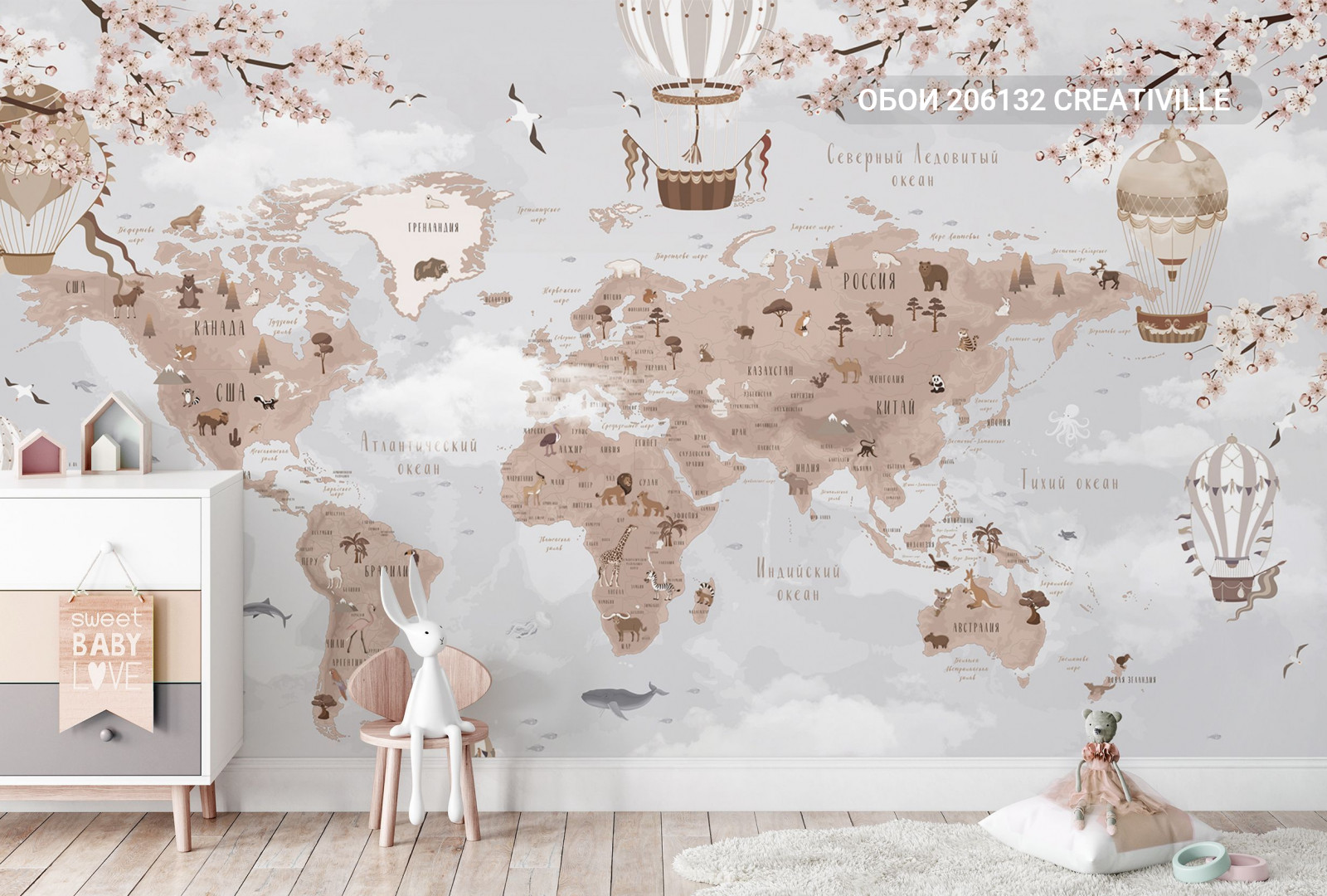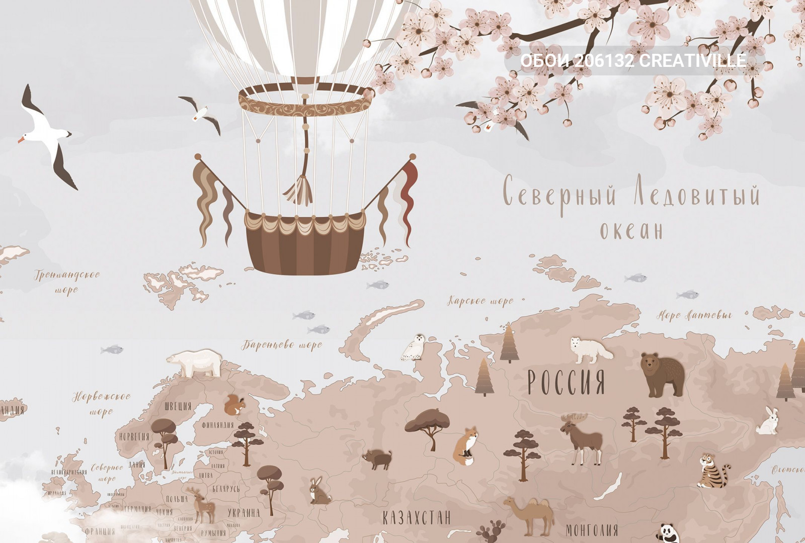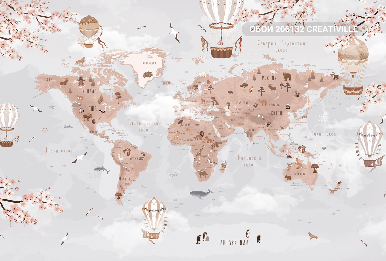 206132 Creativille карта мира с облаками и сакурой
