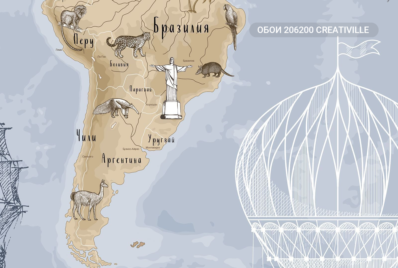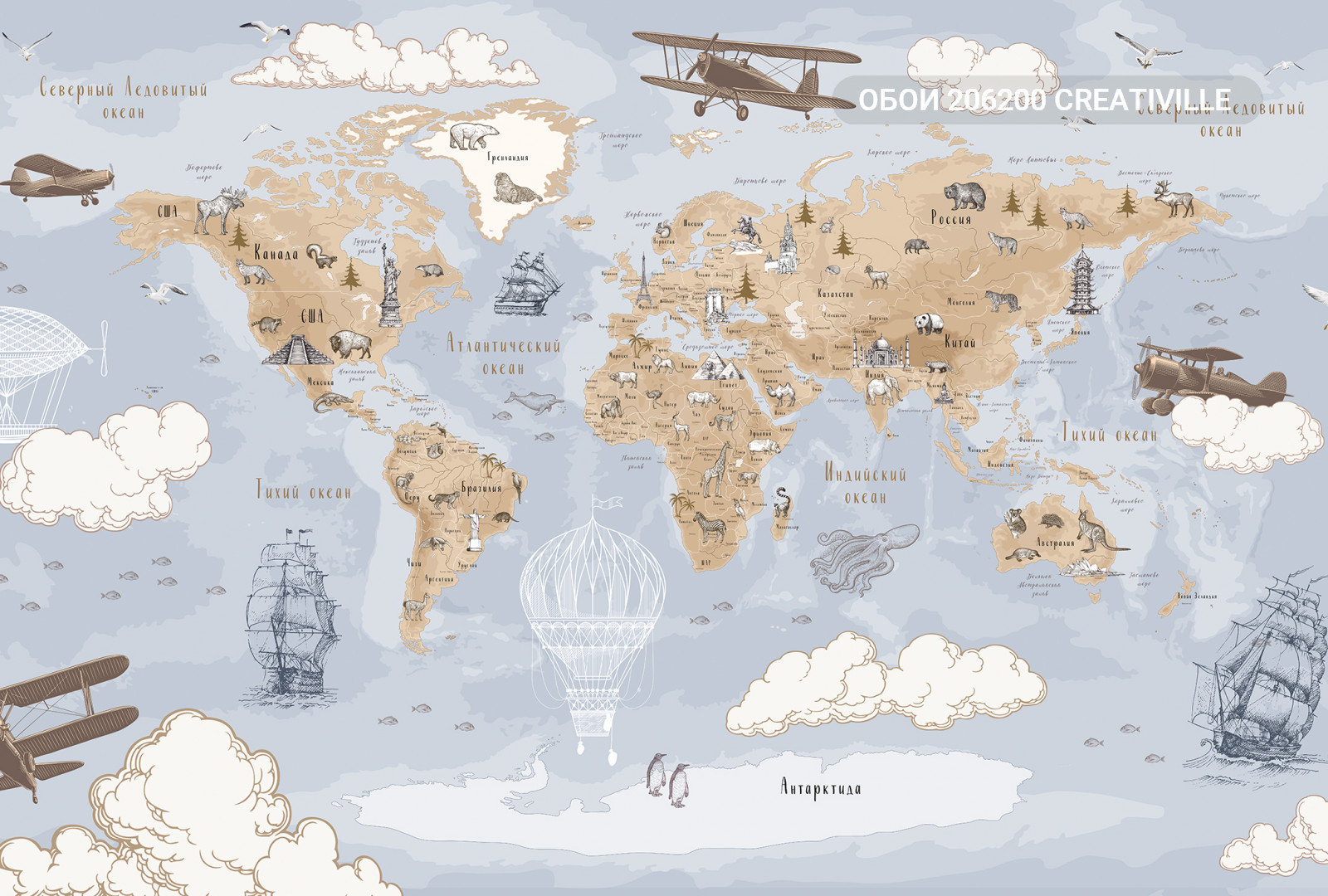 206200 Creativille карта мира в стиле старинной гравюры