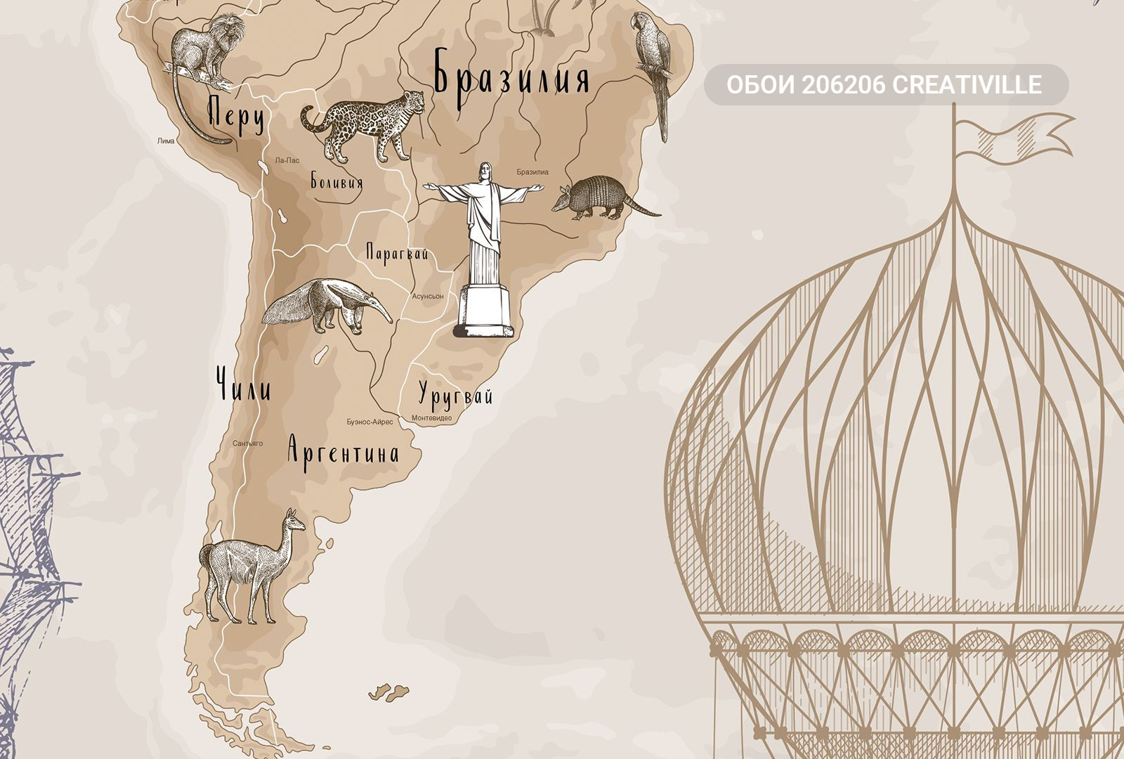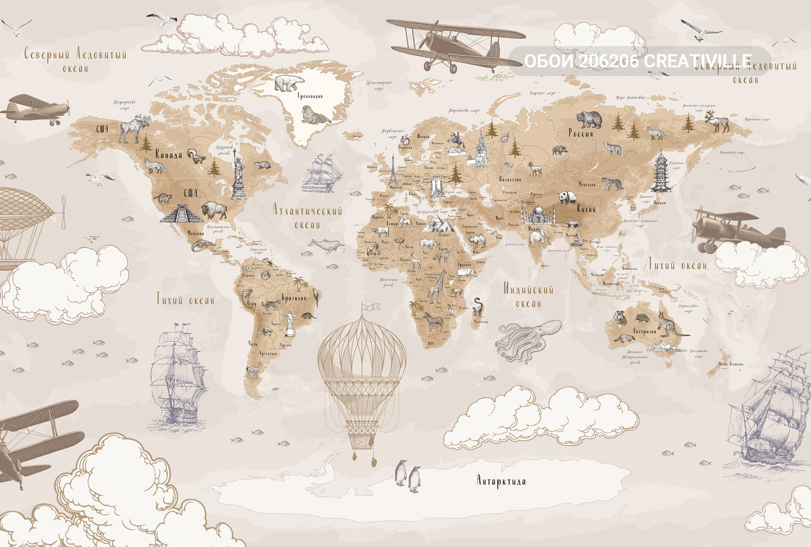 206206 Creativille карта мира в стиле старинной гравюры