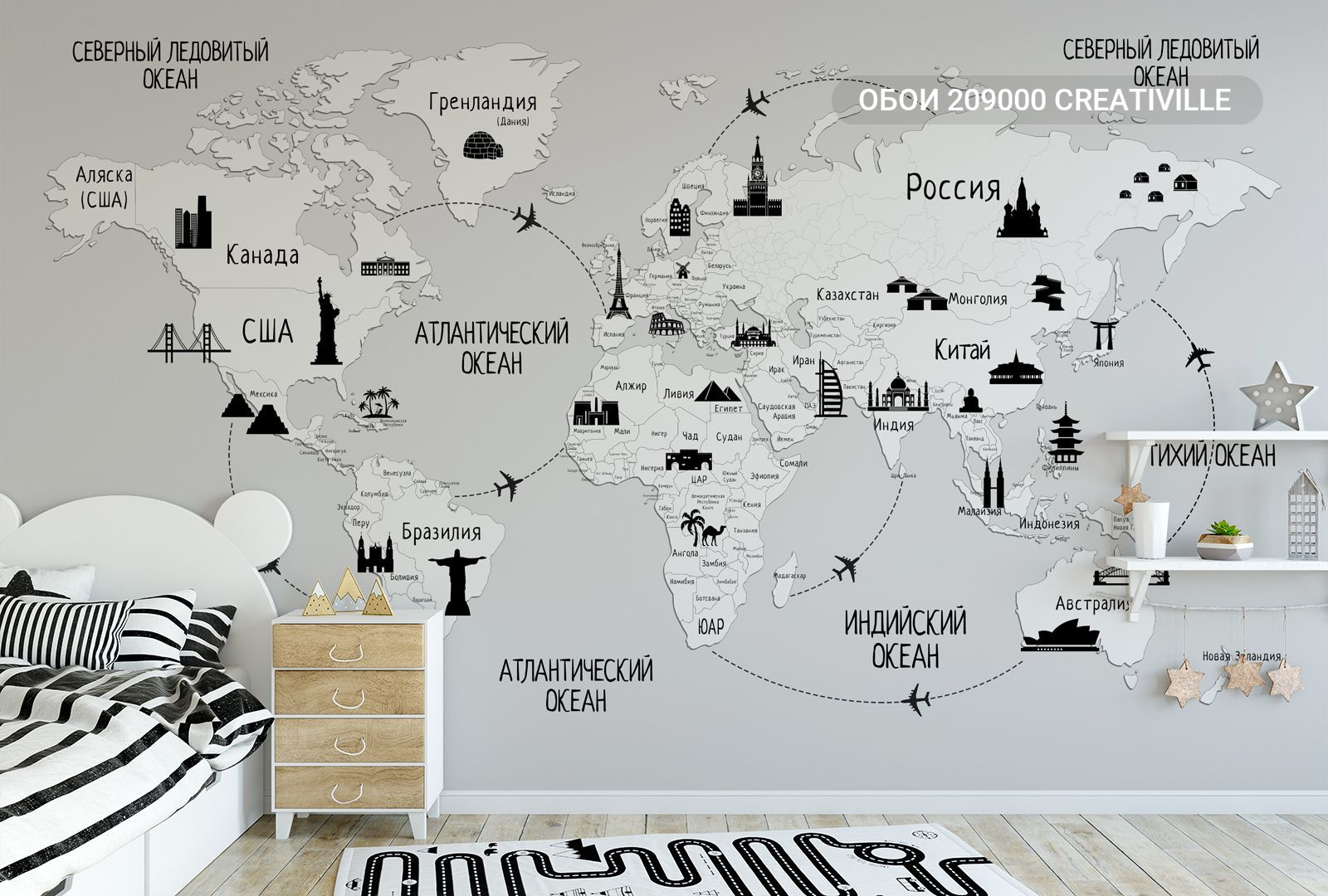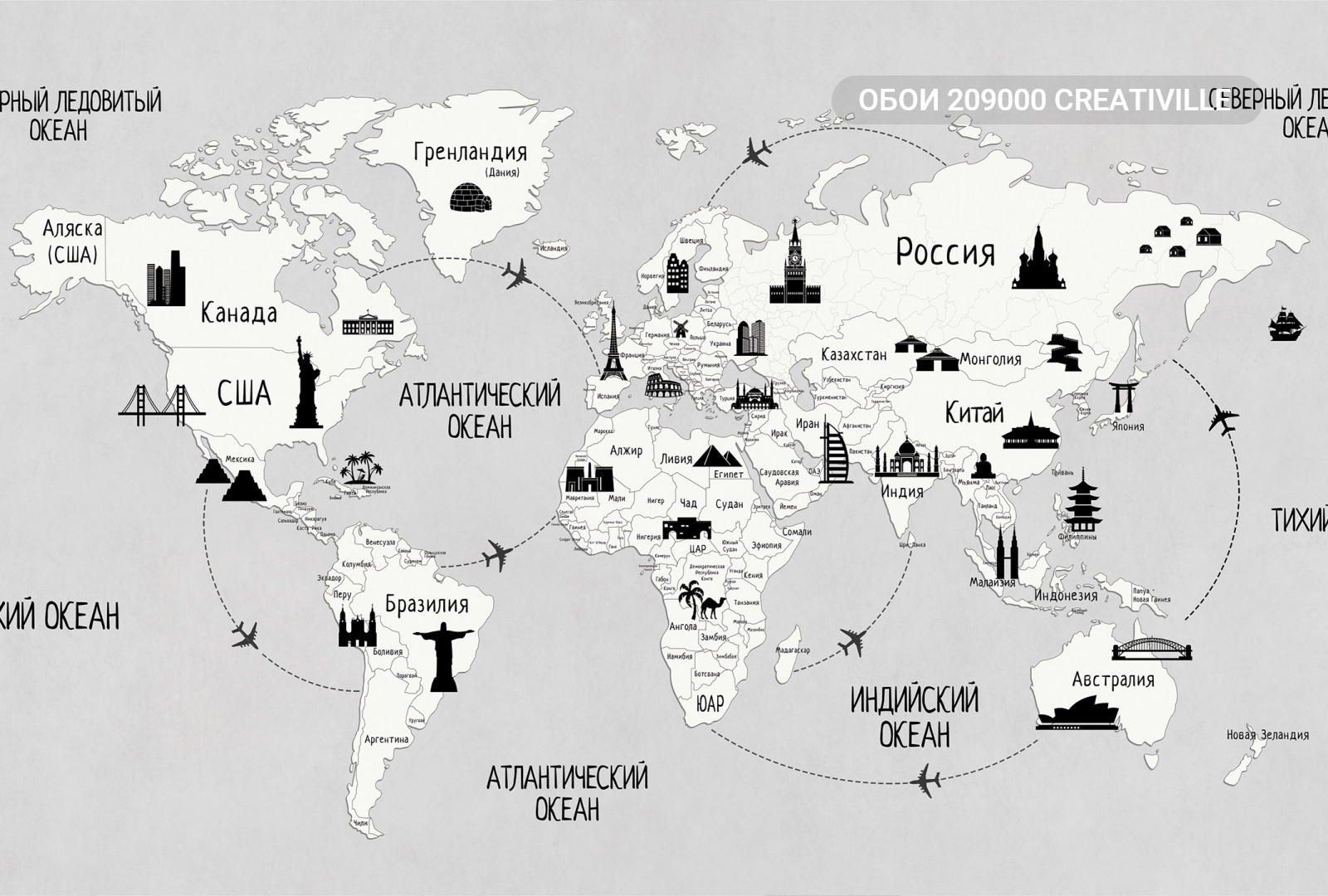 209000 Creativille карта мира с достопримечательностями