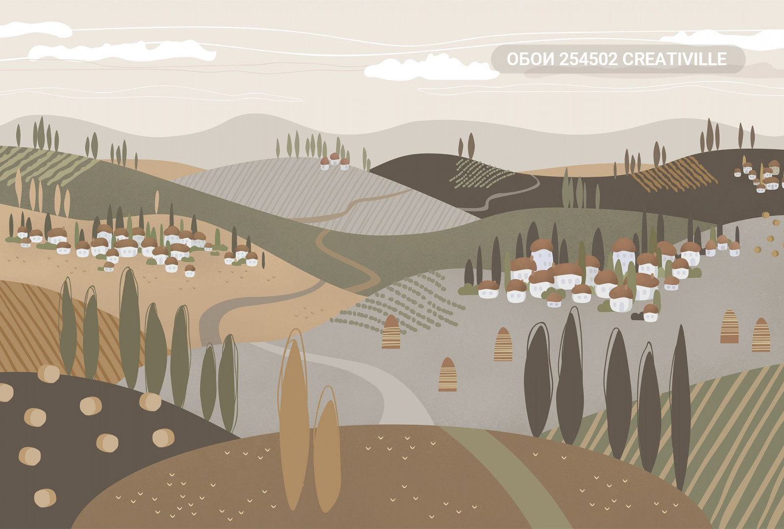 254502 Creativille домики на холмах с кипарисами