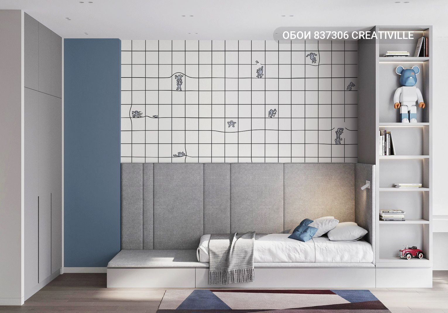 837306 Creativille Серые человечки на фоне в клетку
