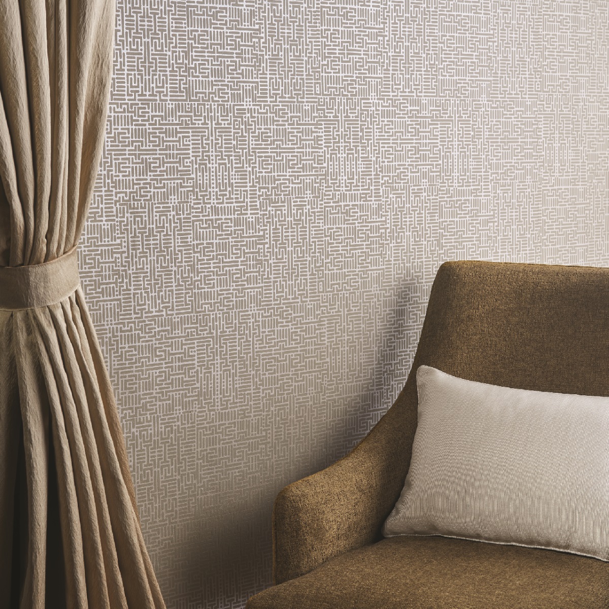 Композиция рисунка с чёткими контурами сливается в гармоничный лабиринт. Дизайн внесёт нотки загадочности в интерьер, а цветовая гамма позволяет интегрировать его в любое пространство.