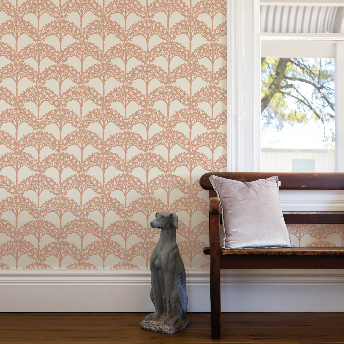 Оригинальные образы деревьев задают определенный ритм и рисуют монохромный геометрический узор в современной цветовой палитре.