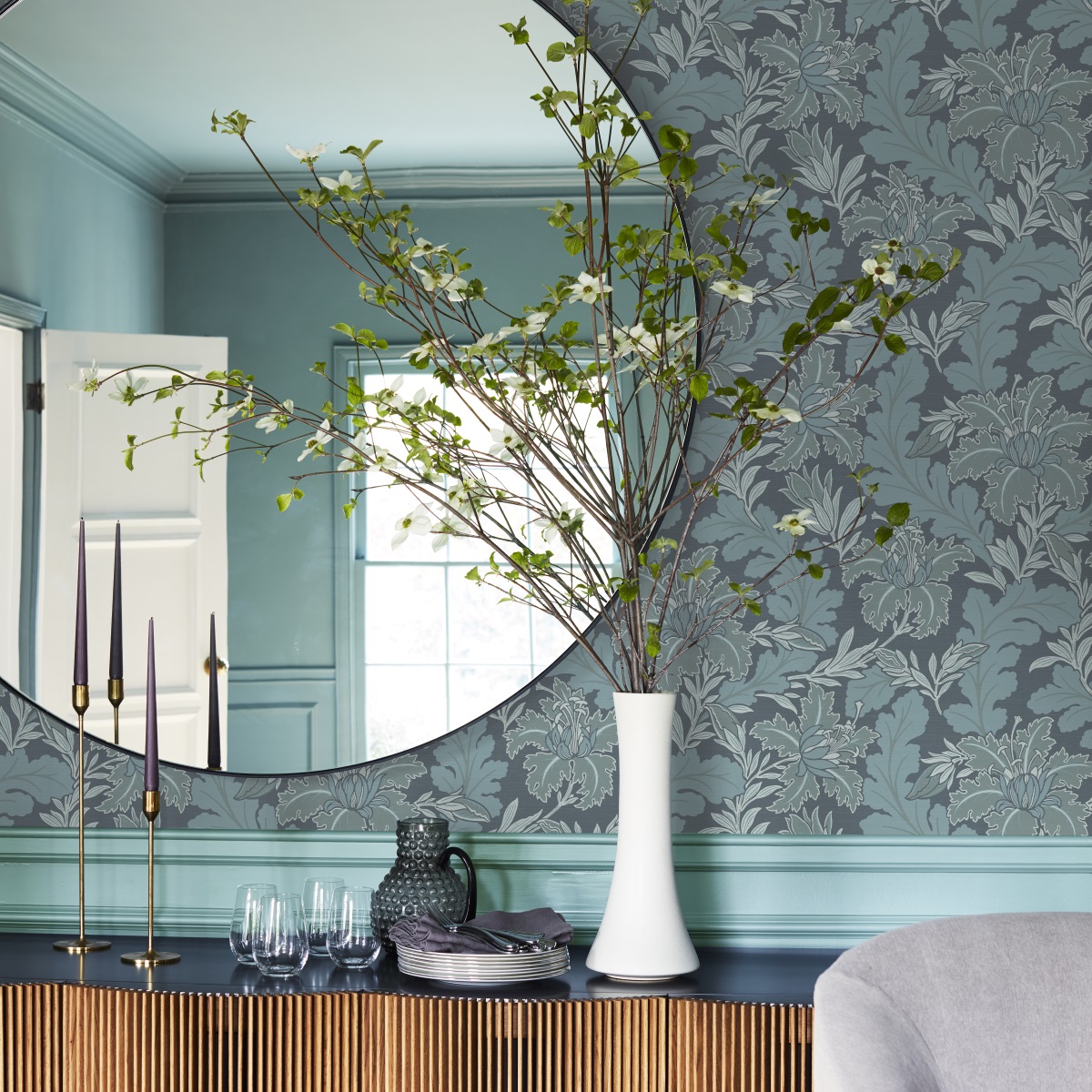 Дизайн вдохновлен работами У. Морриса с изображением листвы, лозы и цветов, которые художник наблюдал в своих садах или во время прогулок по сельской местности. Великолепный растительный рисунок листьев аканта и обильное цветение создают неповторимые образы английских садов и парков.
