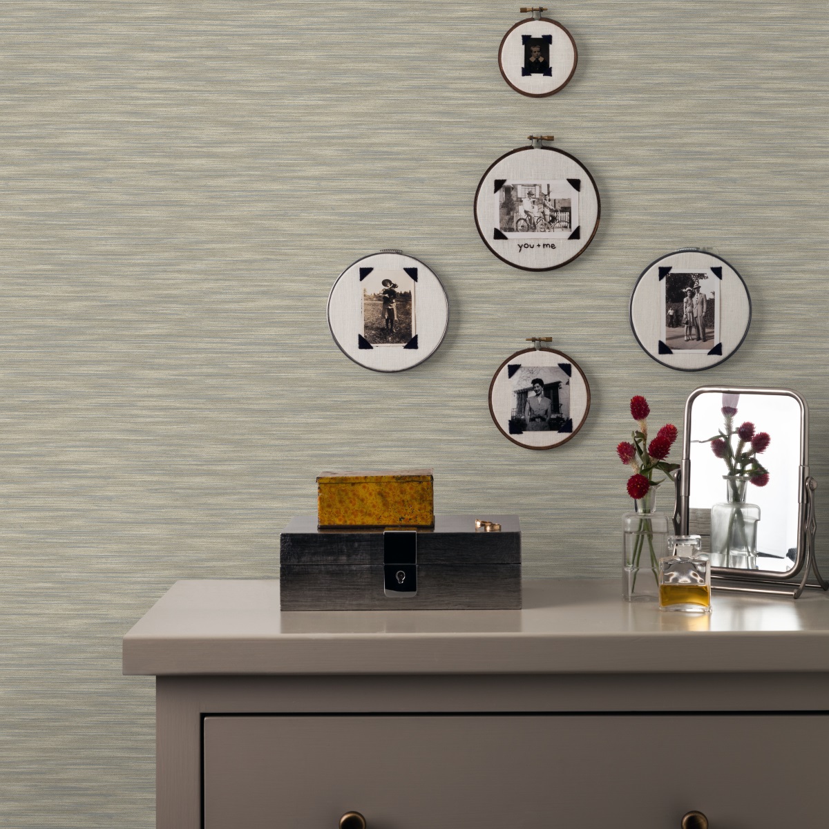 Горизонтальный однотонный рисунок прекрасно имитирует тканое плетение, плавные цветовые градиенты на полотне отражают световые переходы.