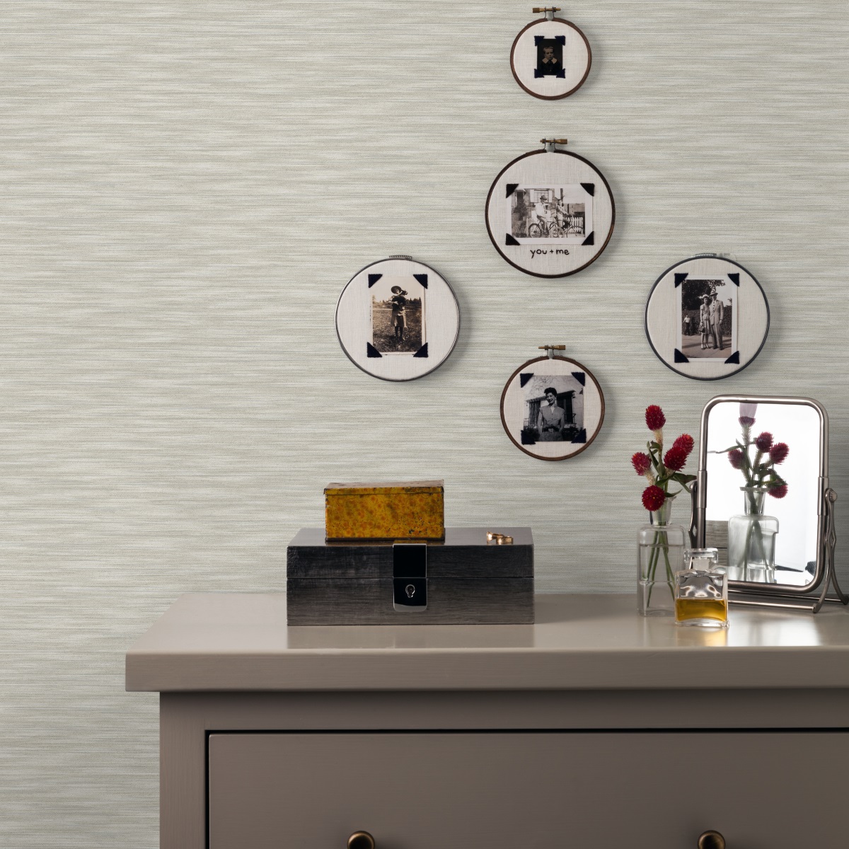 Горизонтальный однотонный рисунок прекрасно имитирует тканое плетение, плавные цветовые градиенты на полотне отражают световые переходы.