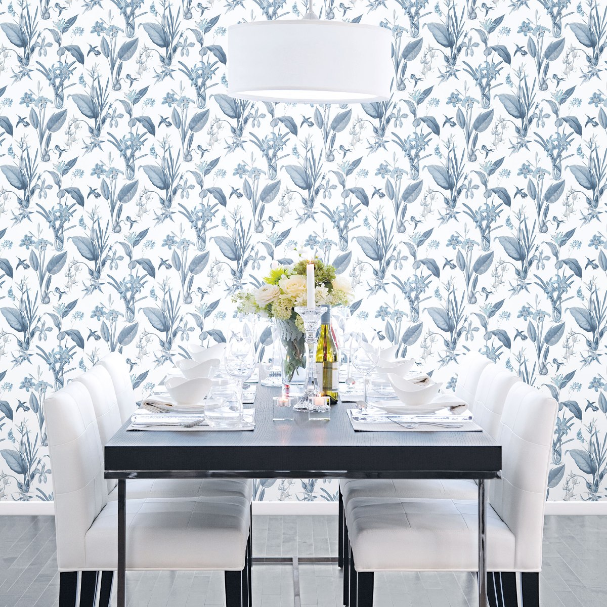 Рисунок с объемными цветам, листьями и птицами способствуют созданию умиротворяющего и воздушного интерьера в вашем доме.