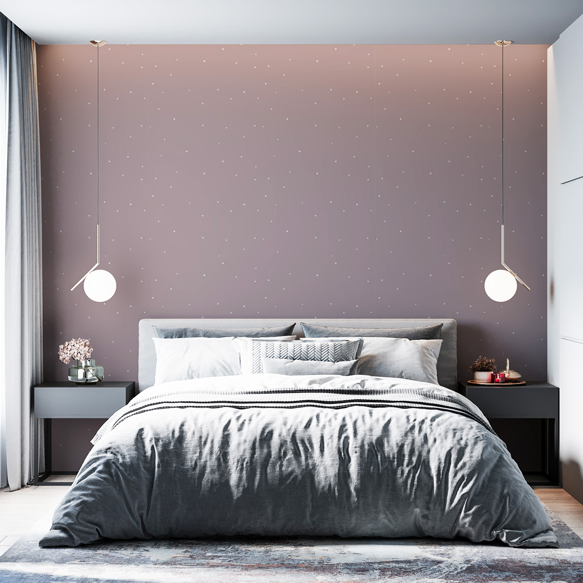 Легкий дизайн с нежными оттенками и хаотичными звездочками прекрасно подойдет для детских интерьеров или дополнит дизайн FOREST.