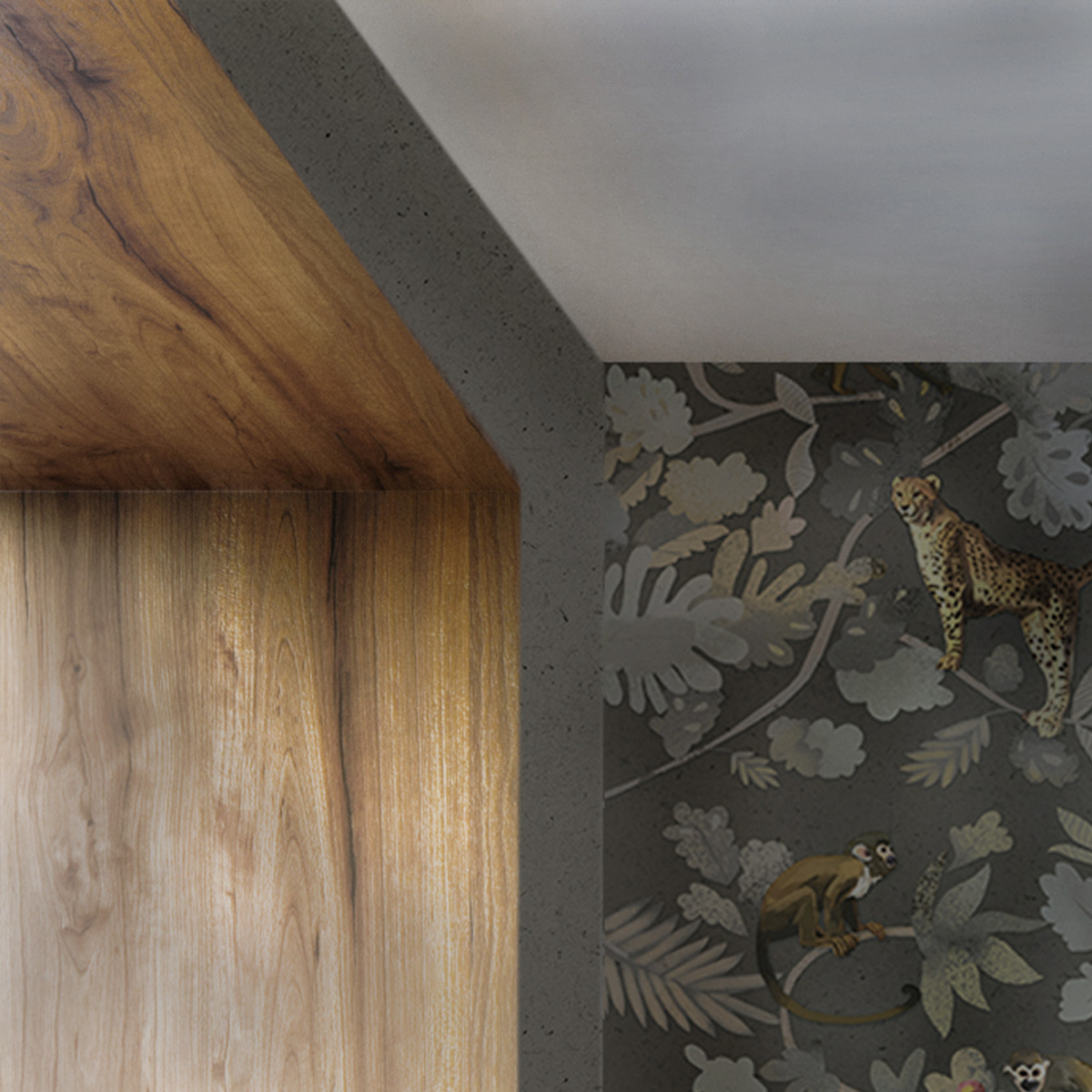 Неоднородный фон однотонного дизайна поддерживает тему дикой природы, заданной в паттерне KIPLING.