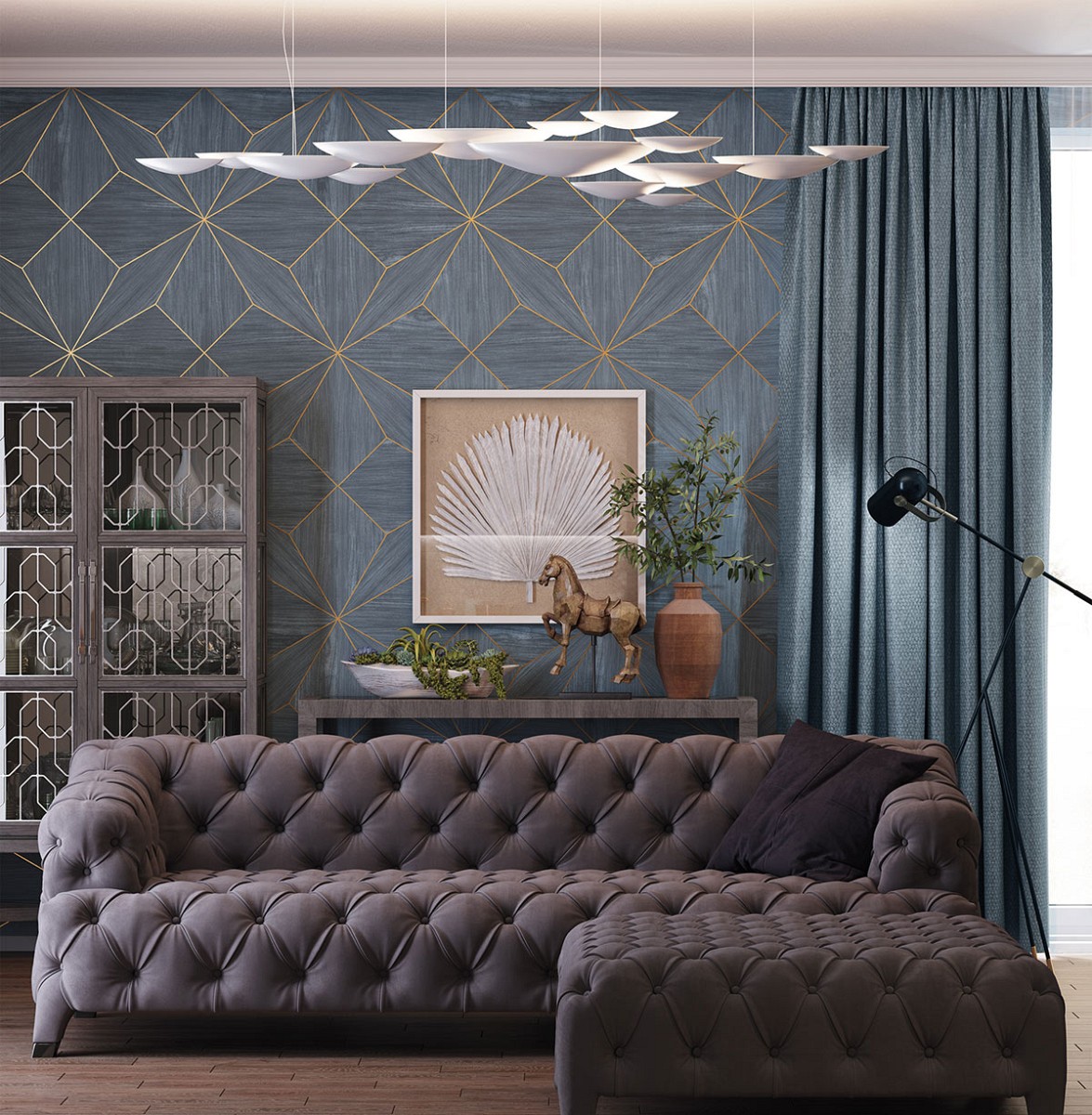 • Material: Wood Veneer, Metal leaf, Vlies