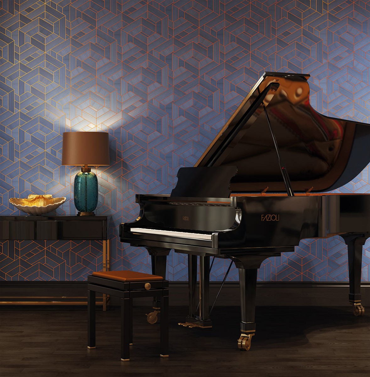 • Material: Wood Veneer, Metal leaf, Vlies