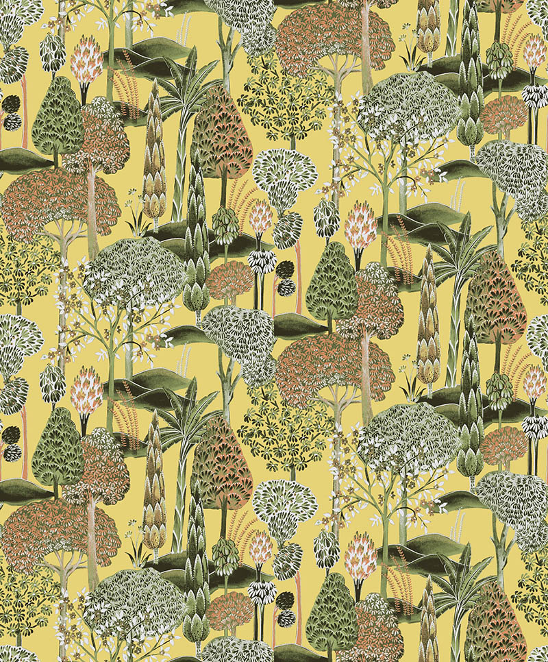 Обои Masureel «Viray» — это настенное покрытие, в котором ручная роспись деревьев вдохновлена искусством миниатюрной живописи. Разнообразные формы деревьев, собранные из различных картин, сливаются в единый образ, наполняя пространство мощной энергией природы. Название «Viray» — отсылка к буддийскому понятию «virya», что означает внутреннюю силу и энергию.