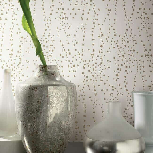 Подобно тому, как созвездия рассыпаны по ночному небу, мириады металлических блёсток словно разбросаны по однотонной поверхности. Универсальный и очаровательный узор — так можно описать эти обои «Звёздная россыпь».