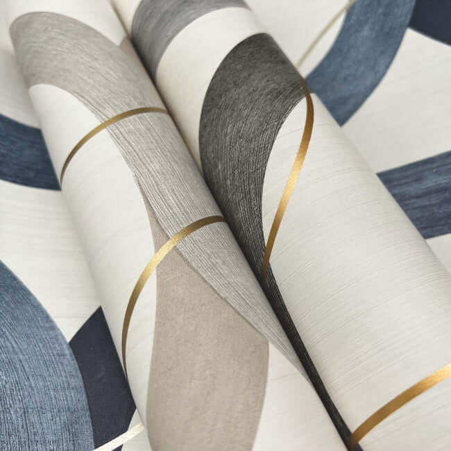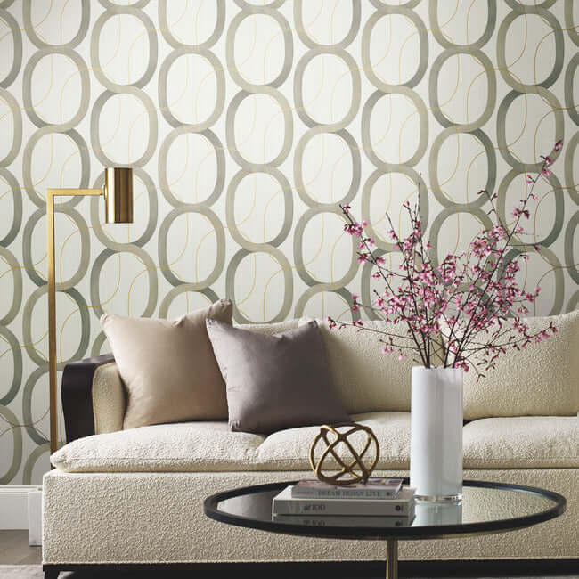 Динамичное сочетание цветов: ленты, переплетённые как звенья цепи в благородном землистом оттенке таупе, дополнены изящными овалами из полированной латуни.