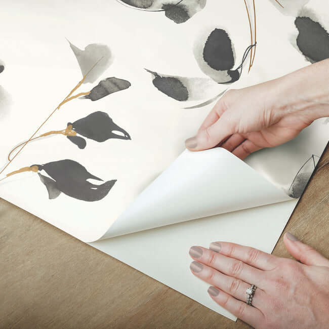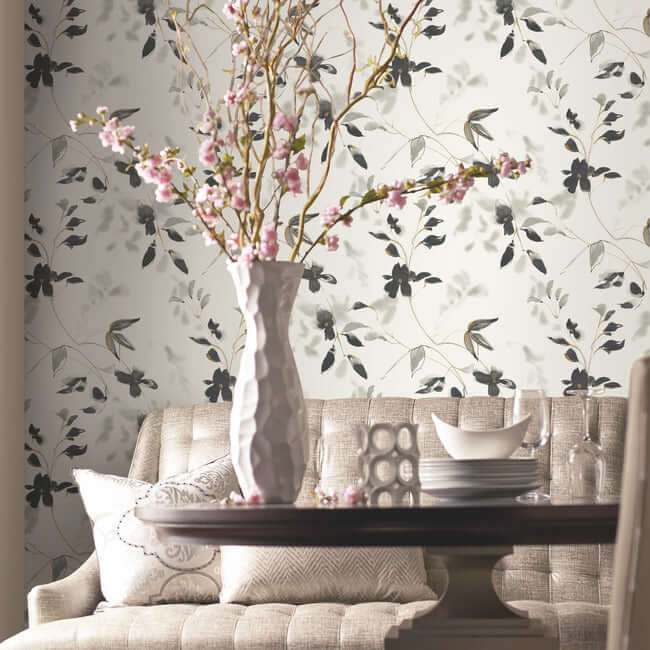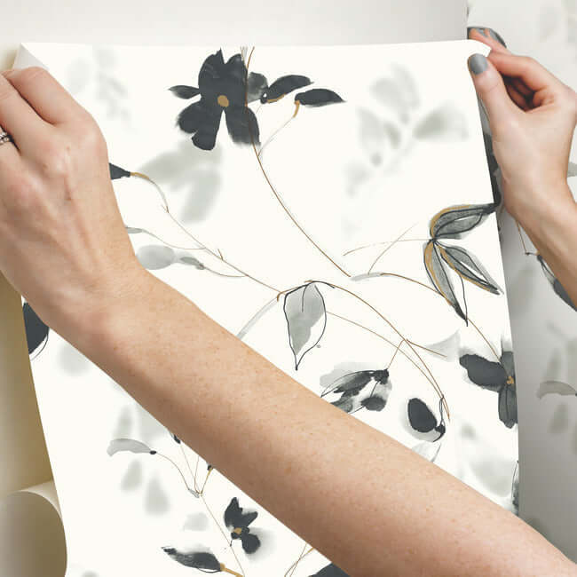 York Candice Olson Wallcoverings Linden Flower Premium Peel + Stick Wallpaper- Black PSW1103RL
