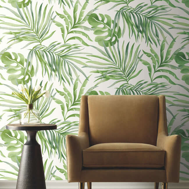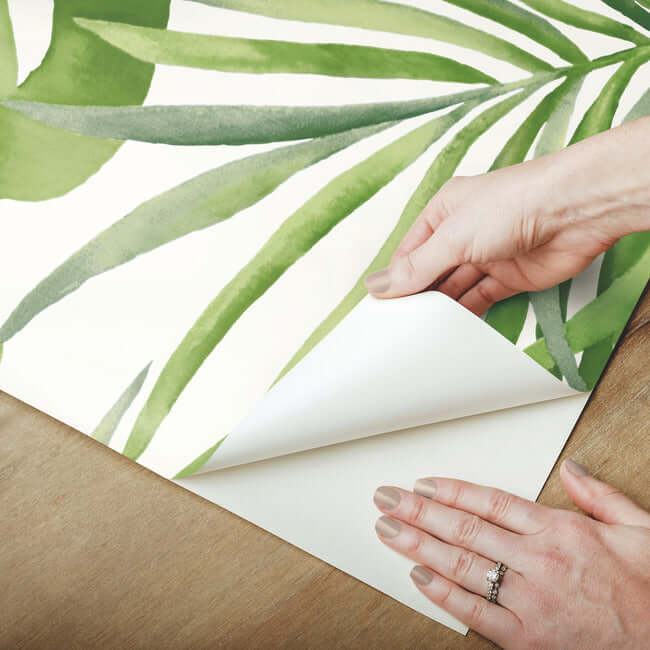 Тональная игра лесного зелёного придаёт этой натуральной палитре богатство и глубину. Обои-раскраска «Зелёный рай» с пальмовыми листьями, на самоклеящейся основе, имеют ширину 27 дюймов и длину 20 футов, покрывая примерно 45 квадратных футов на рулон.