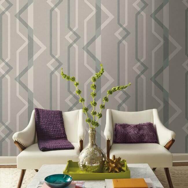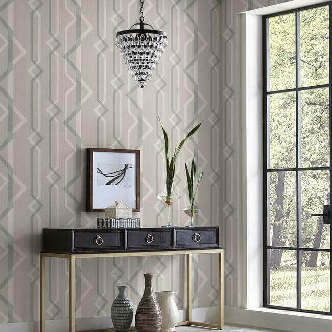 Почти нейтральные оттенки укрощают крупные геометрические формы, созданные вертикальными полосами, предлагая мягкий подход к современному декору. Это обої «Shape Shifter».