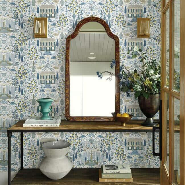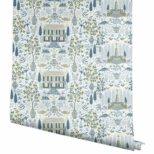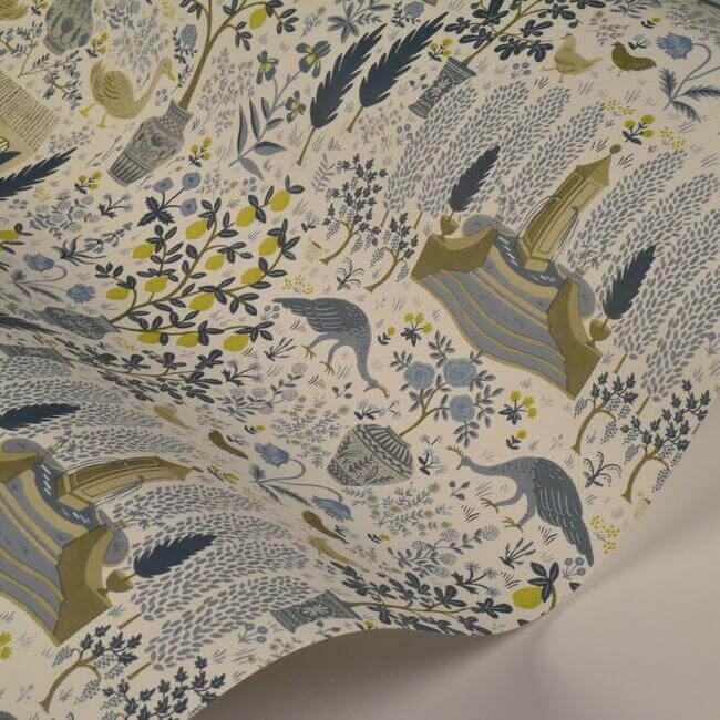 Вдохновленный одноименным поместьем во французской Гаскони и старинным узором из архивов York, дизайн Camont от Rifle Paper Co. изображает идиллическую сцену из XVIII века: уютный французский фермерский дом в окружении фиговых и лимонных деревьев, цветов и домашних животных.