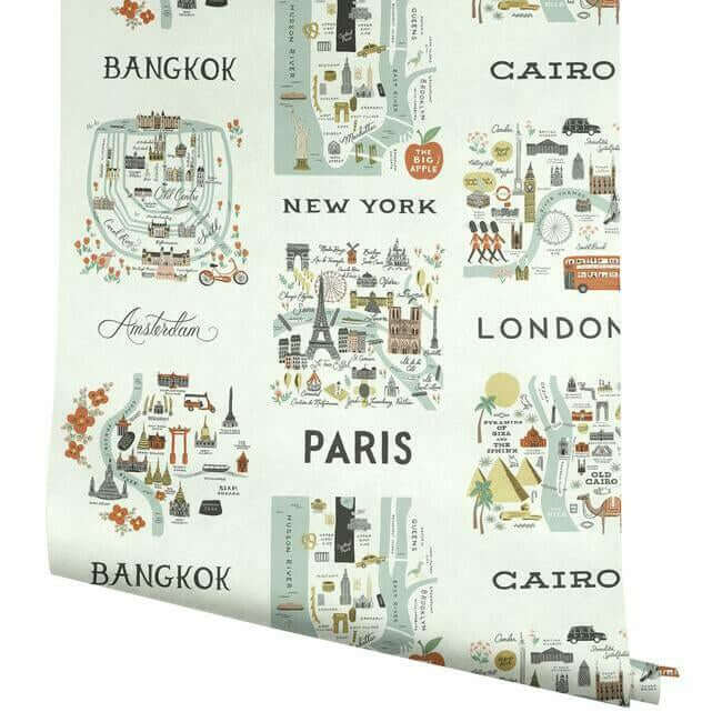 Откройте для себя мир, не выходя из дома, с коллекцией обоев «City Maps» от Rifle Paper Co. Эти иллюстрированные карты городов перенесут вас в любимые уголки планеты — от Нью-Йорка до Токия.