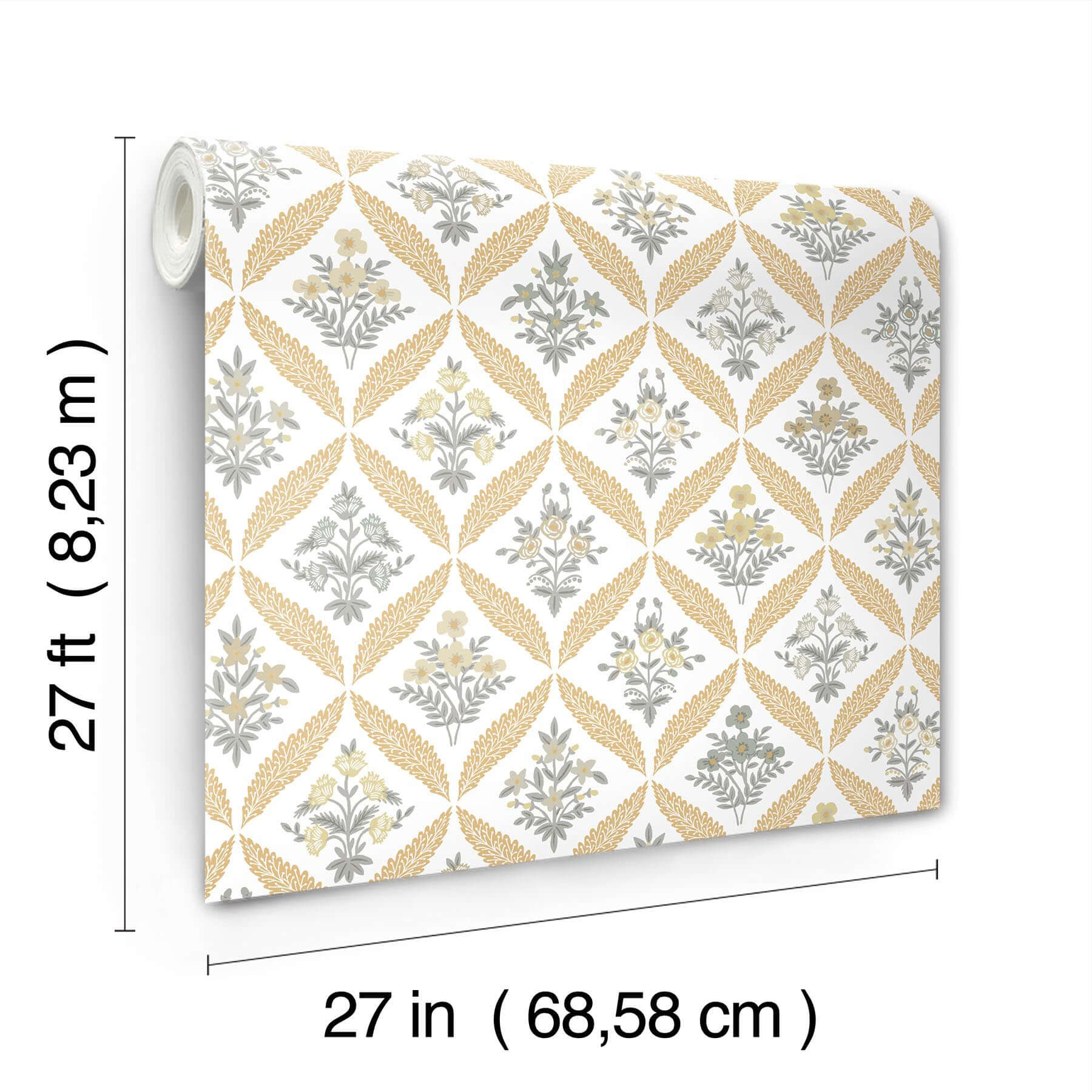 Каждый рулон обоев Estee Garden имеет размер примерно 27 дюймов в ширину и 27 футов в длину, что составляет около 60.8 квадратных футов на рулон.