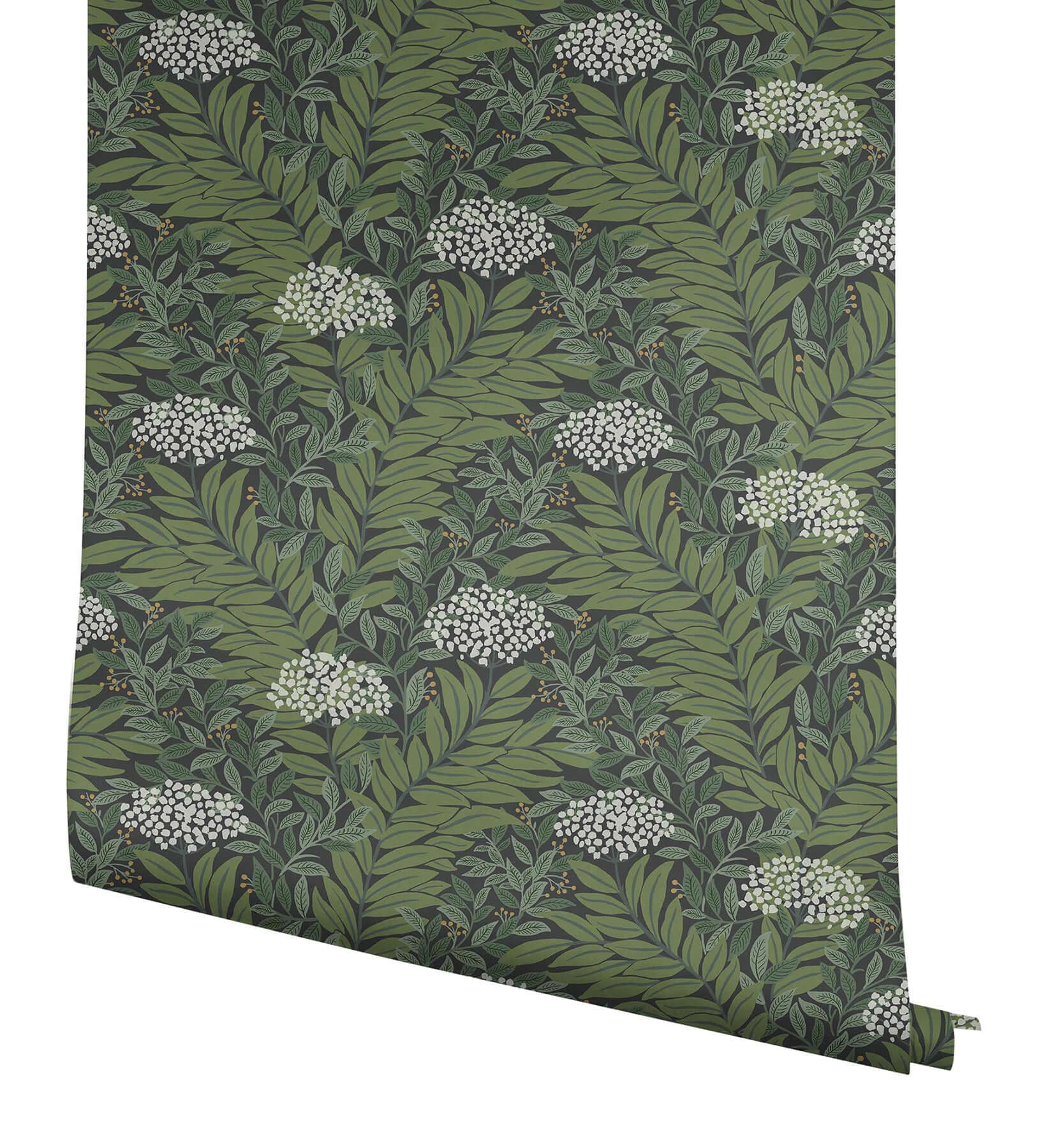 Highgrove — это традиционный дизайн, в котором многослойные листья создают роскошную ткань из зелени, украшенную соцветиями кружева королевы Анны. Иллюстрация выполнена в оттенках белого, зелёного и чёрного.