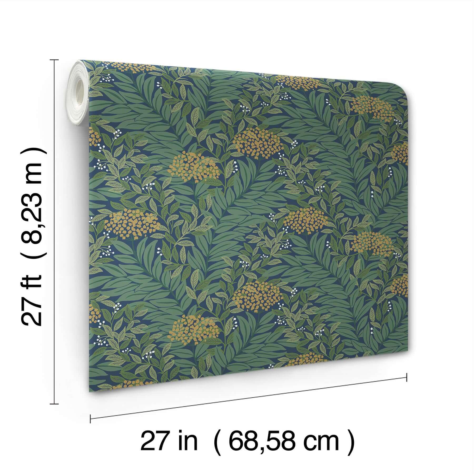 Обои Highgrove имеют размер примерно 27 дюймов в ширину и 27 футов в длину, что составляет около 60,8 квадратных футов на рулон.