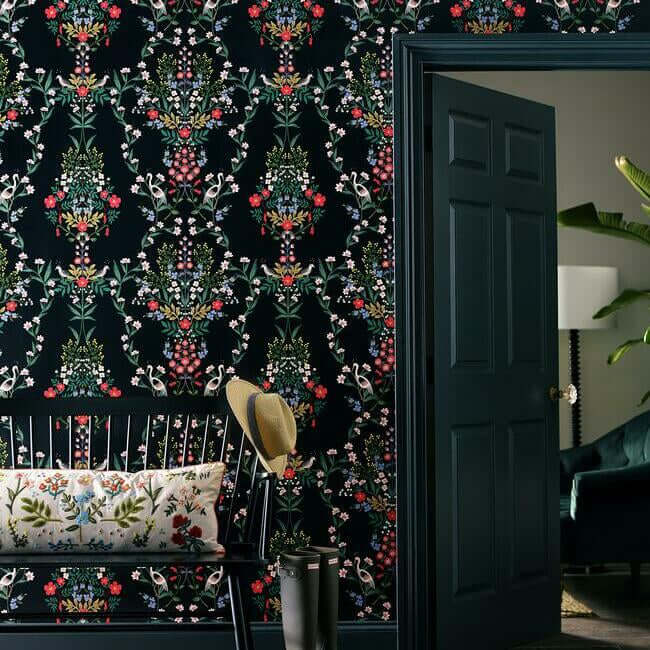 York Rifle Paper Co. Wallcoverings Luxembourg Premium Peel + Stick Wallpaper- Black Multi PSW1326RL