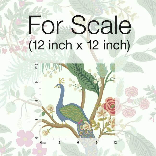 В этой современной интерпретации традиционных мотивов шинуазри от Rifle Paper Co. великолепные павлины восседают на извилистых ветвях, окружённые яркими цветами и изумрудной листвой.