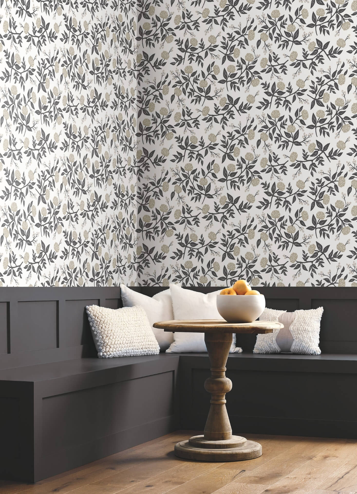 Дизайн: Принт, созданный студией Rifle Paper Co., превращает стену в живописное полотно, наполняя пространство цветом, светом и изящной графикой. Это идеальный выбор для создания акцентной стены или оформления всего помещения в воздушном, жизнерадостном стиле.