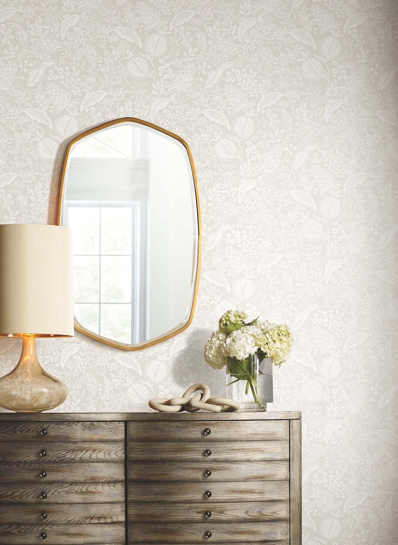 York Rifle Paper Co. Wallcoverings Pomegranate Wallpaper- Beige & White PSW1629RL