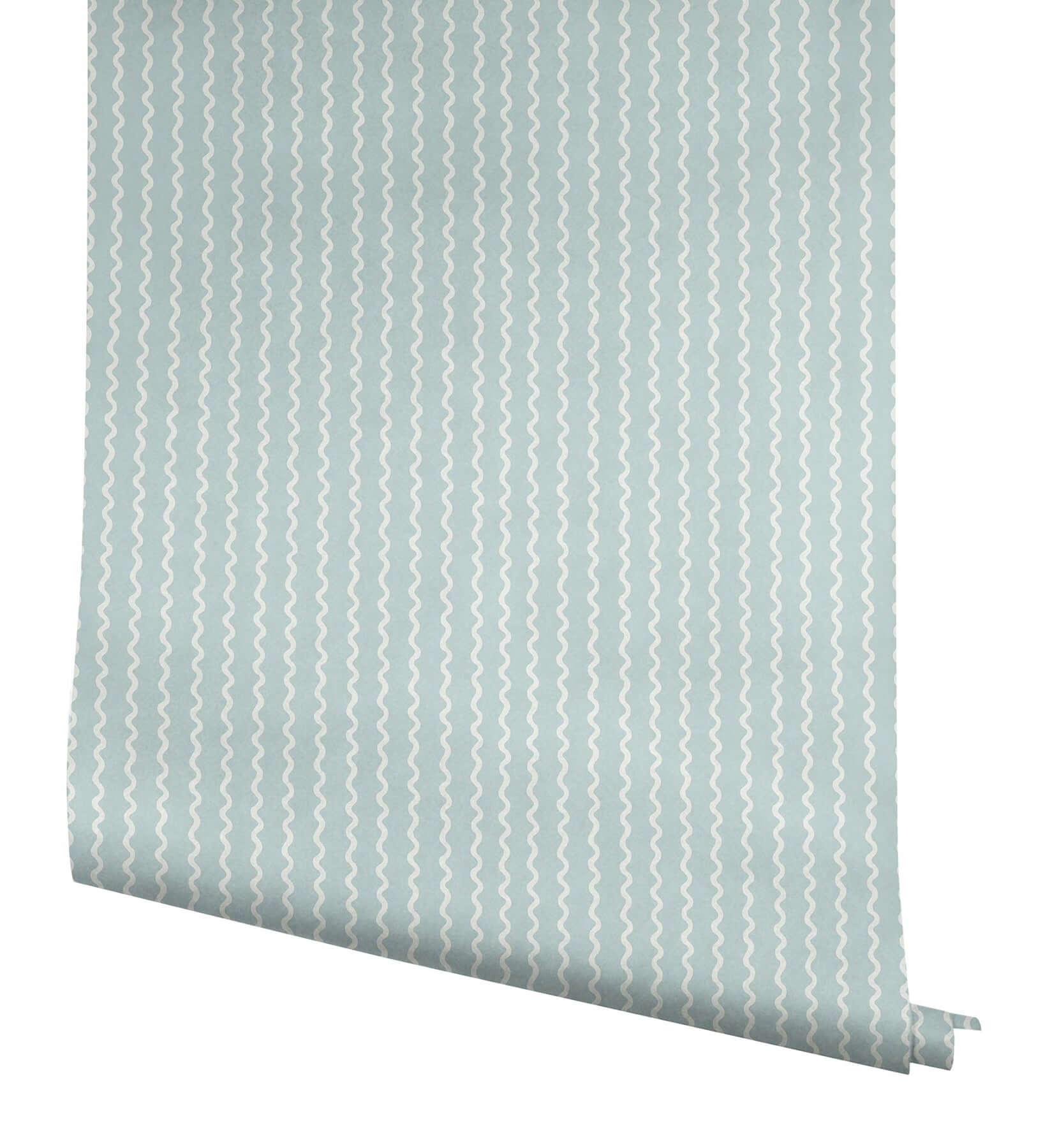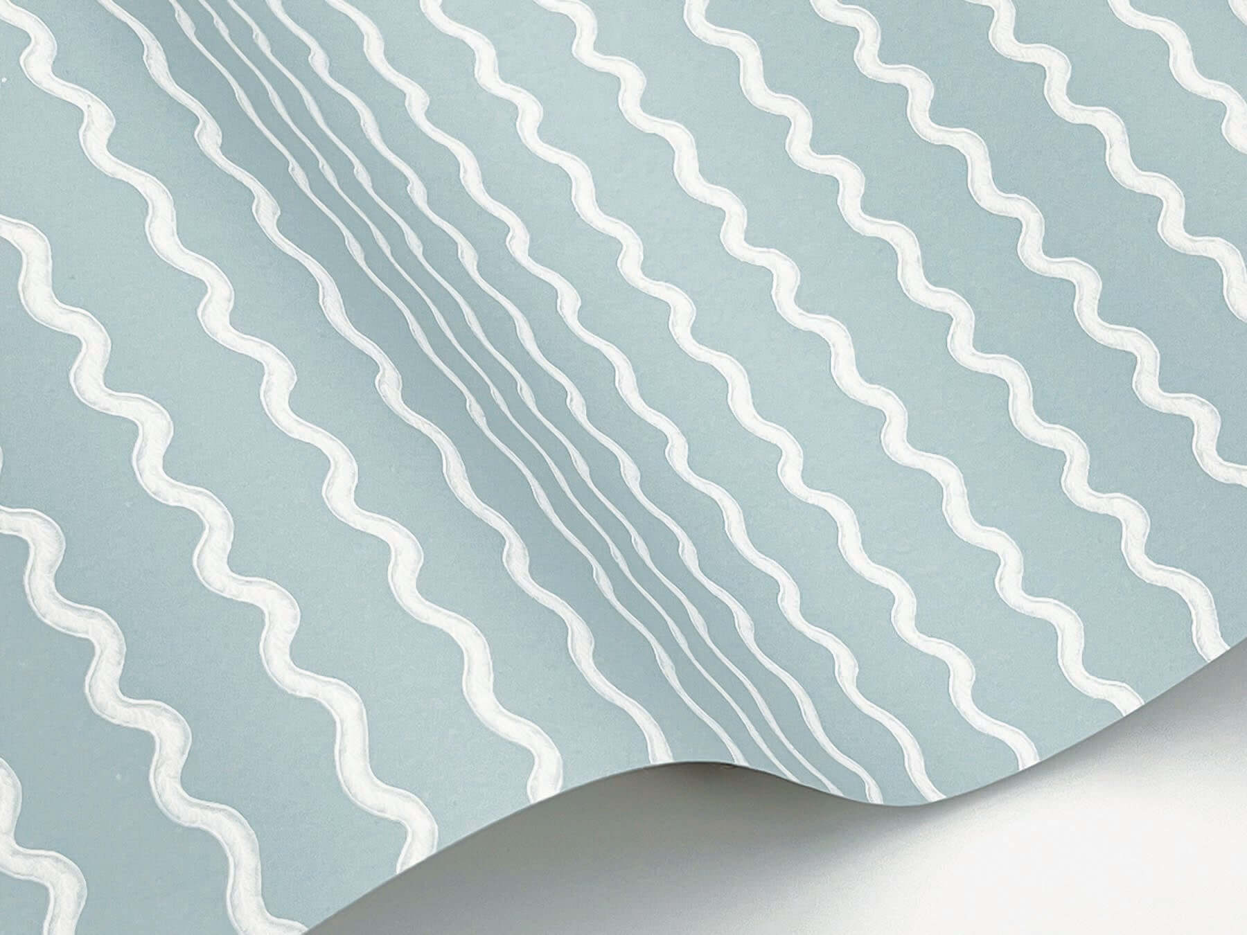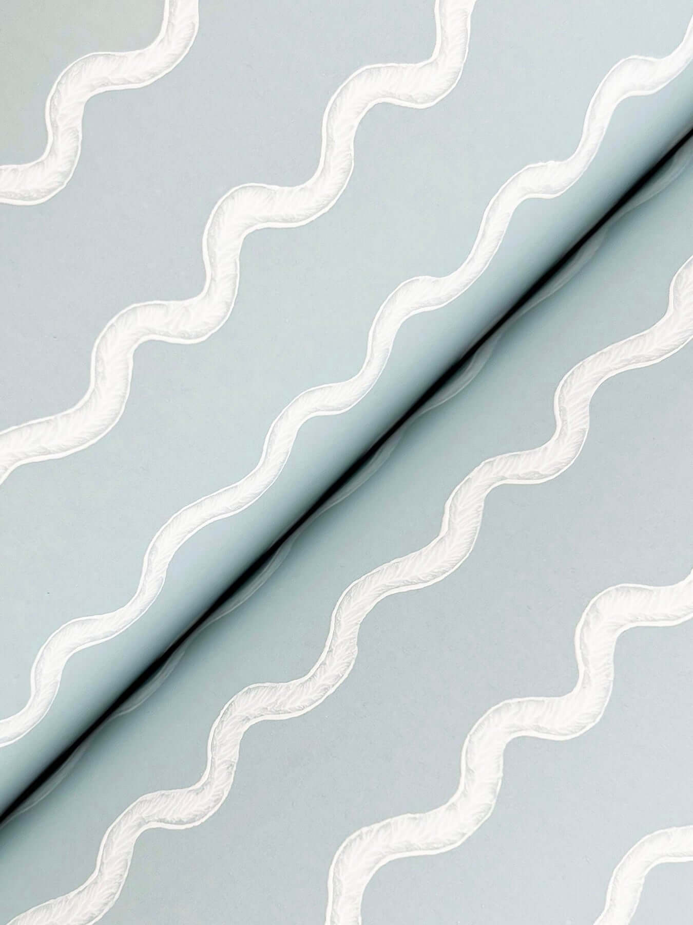 Изогнутая линия, подобная изящной ленте, — такова дизайнерская находка обоев Rickrack от Rifle Paper Co. Это очаровательное переосмысление классической полоски, где белый контур рисует узор на нежном фоне светлого голубого.