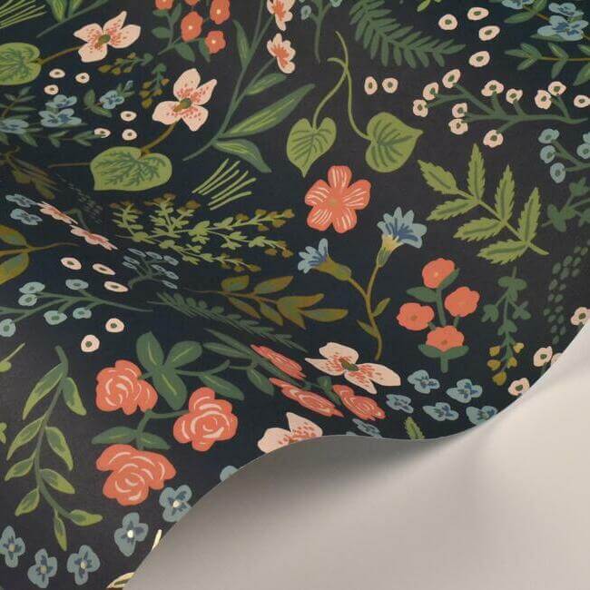 Узор «Уайлдвуд» — это искусно расположенная композиция из полевых цветов и зелени, создающая детализированный и естественный цветочный дизайн. Вдохновением для него послужили старинные ботанические иллюстрации, что придает обоям особый шарм и художественную ценность.