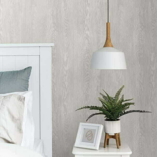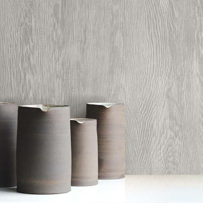 Сочетание слегка грубоватой текстуры и тонкого, нерегулярного рисунка волокон создает убедительную имитацию грубо распиленной древесины — это обои «Квартер-Сон».
