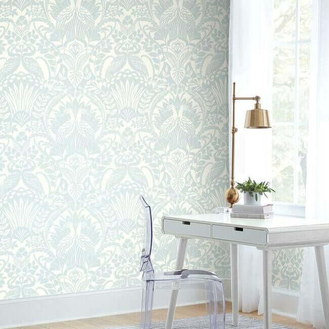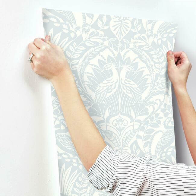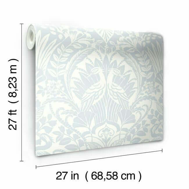 Обои «Egret Damask» поставляются в рулонах размером примерно 27 дюймов в ширину и 27 футов в длину, что позволяет покрыть около 60,8 квадратных футов поверхности. Они изготовлены на уникальной высокопрочной основе Sure Strip™, что делает их невероятно простыми в поклейке и бережном удалении — достаточно лишь использовать воду.