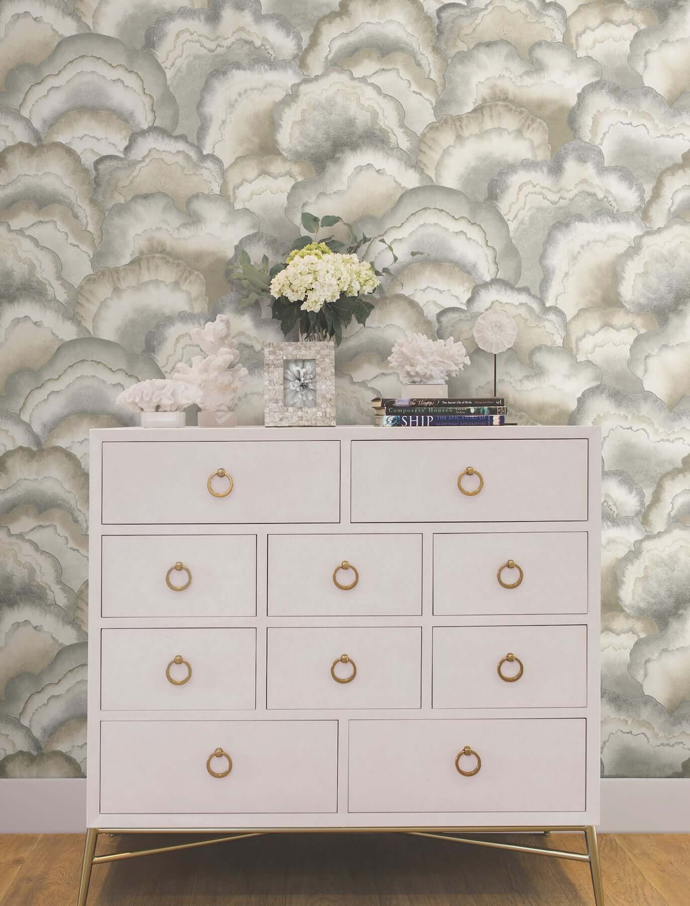 Этот дизайн вдохновлен узнаваемым почерком Кэндис Олсон, в котором современность гармонично сочетается с вневременной элегантностью. «Веера из перламутра» — это популярное дополнение к её премиальной коллекции обоев, которое воплощает философию простой и изысканной красоты: Simply Candice.