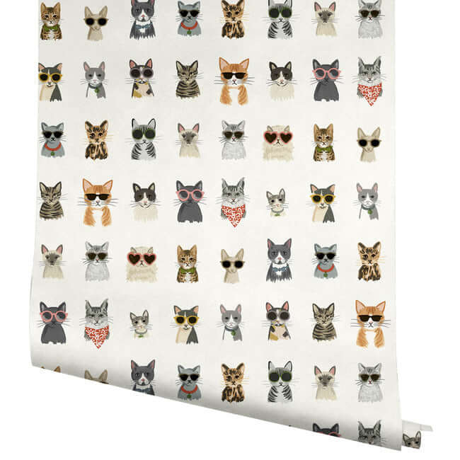 Позвольте себе отпраздновать любовь к самым грациозным домашним питомцам с обоями «Cool Cats» от Rifle Paper Co. Этот очаровательный принт с игривыми котиками в стильных очках станет ярким и тёплым акцентом в вашем интерьере, наполняя пространство чувством лёгкости, уюта и доброго юмора.